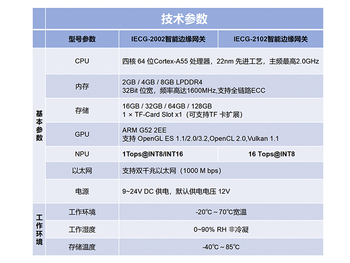 IECG2000系列網關,采用(yòng)模塊化(huà)設計(jì),可(kě)根據算(suàn)法要(yào)求,配備1TOPS、8TOPS、₹16TOPS不(bù)同算(suàn)力NPU,滿足場(chǎng)景要(yào)求的(de)情況下(xià),最大(dà)程度節省成本。